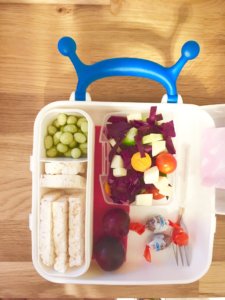 A Kicsinek még nyáron beszereztem egy bento dobozt, ebbe elég jól lehet pakolni. A Nagynak nem kellett, mert szerinte dedós, ezért Ő egy másik fajtát kapott. De mivel az viszonylag kicsi és az iskolatáskája sem éppen nagy, ezért neki van egy külön uzsis táskája (amit amúgy szintén utál, de Ő tini. Mindent utál most).